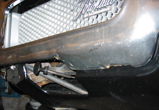 During my Toronado's next trip to the service shop, the new T-handle was installed. It works perfectly, but stuck out like a sore thumb, so I coated the handle with black Plasti Dip: